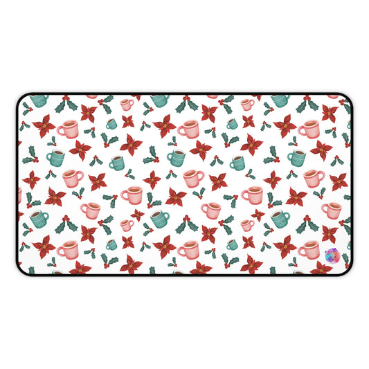 Christmas Desk Mat, Holiday Office Decor, Aesthetic Mousepad, Winter Mouse Pad, Xmas Poinsettia Table Mat