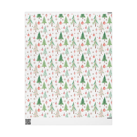 Christmas Wrapping Paper, Festive Tree and Ornaments Design, Gift Wrap Roll for Presents, Xmas Seasonal Decor, Winter Wrapping