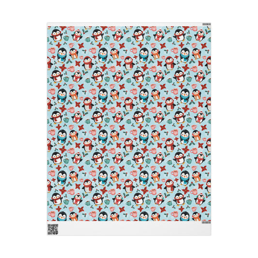 Christmas Wrapping Papers, Penguins and Snowflakes Gift Wrap, Holiday Gift Packaging, Festive Gift Wrap, Wrapping Paper Sheets, Cute