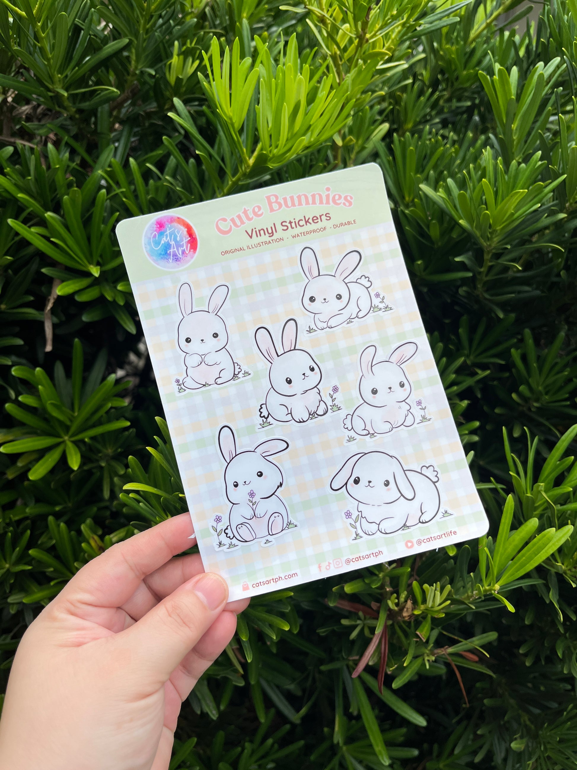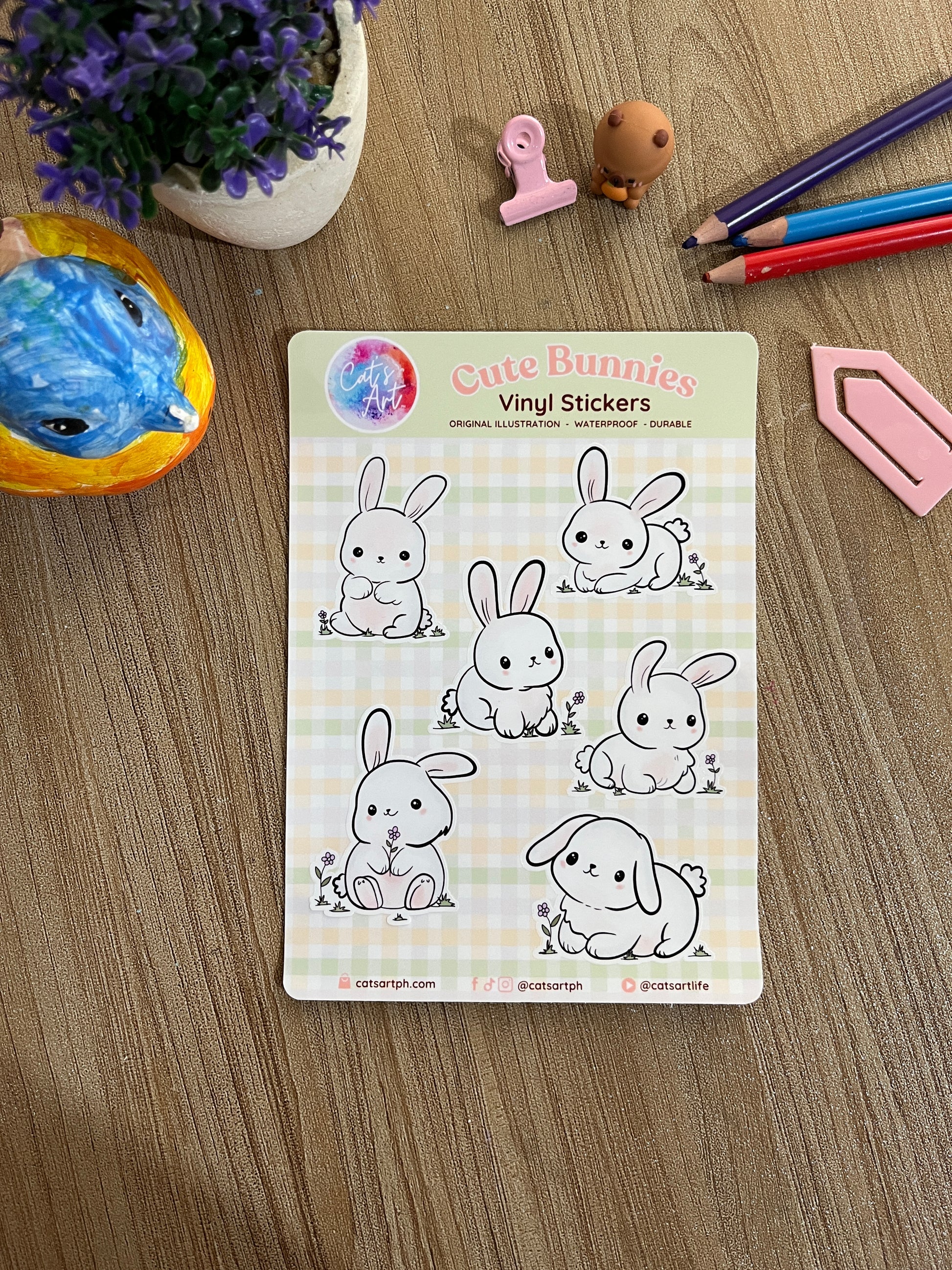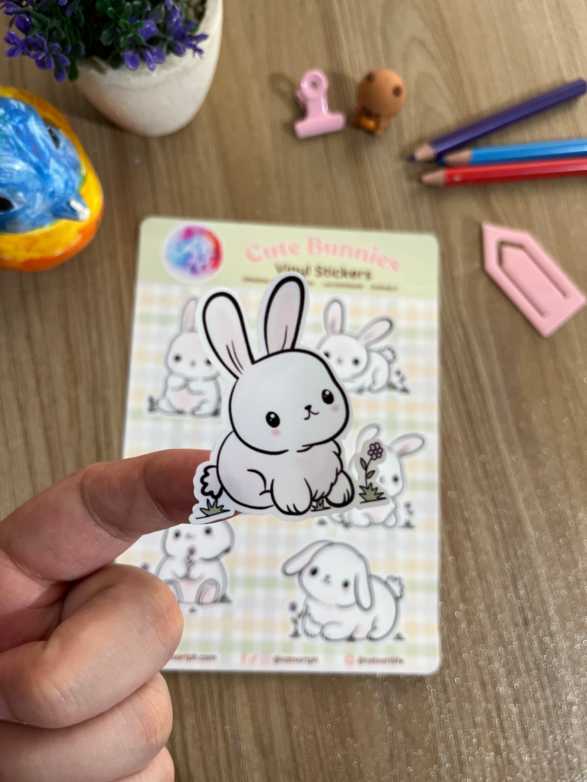 Cute Bunnies Vinyl Sticker Sheet – Glossy, Matte & Glitter Options | 18 Kiss-Cut Stickers