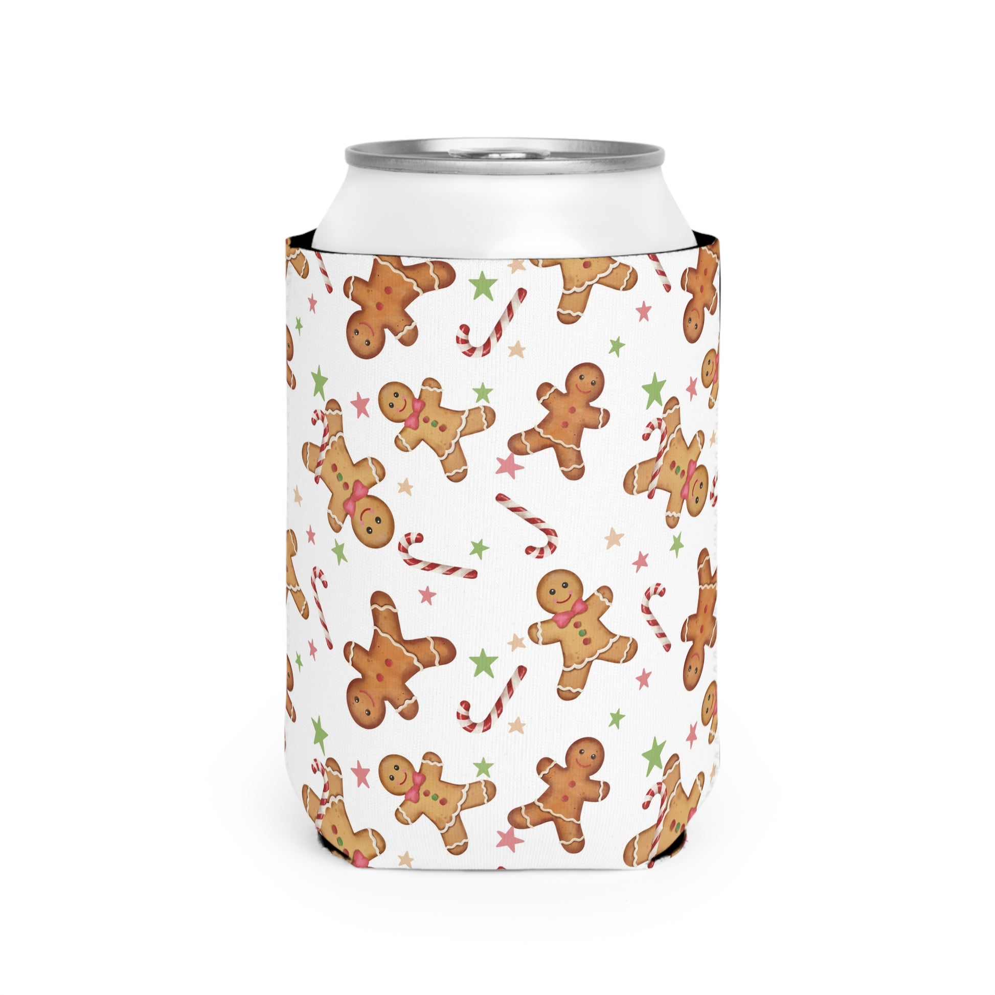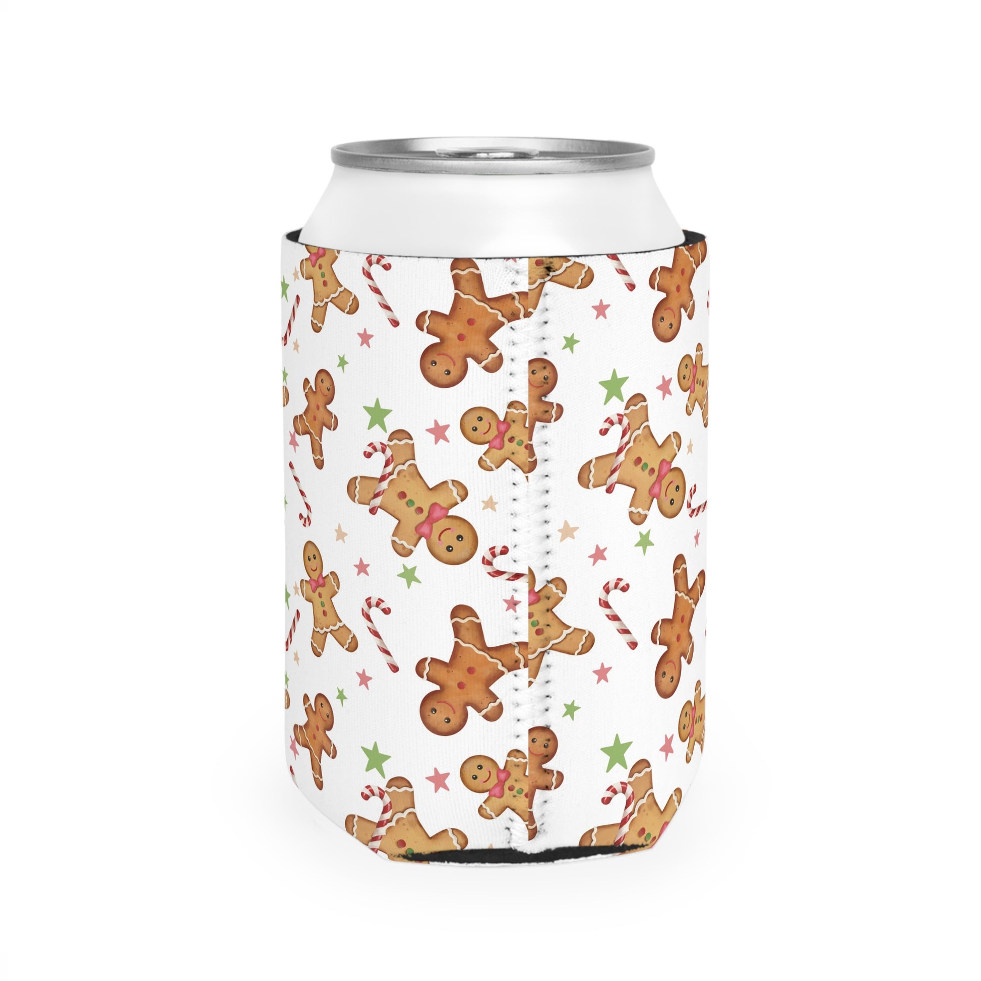 Gingerbread Christmas Can Cooler Sleeve - Holiday Koozies, Festive Drink Holder, Winter Beverage Insulator, Xmas Gift, Stocking Stuffer