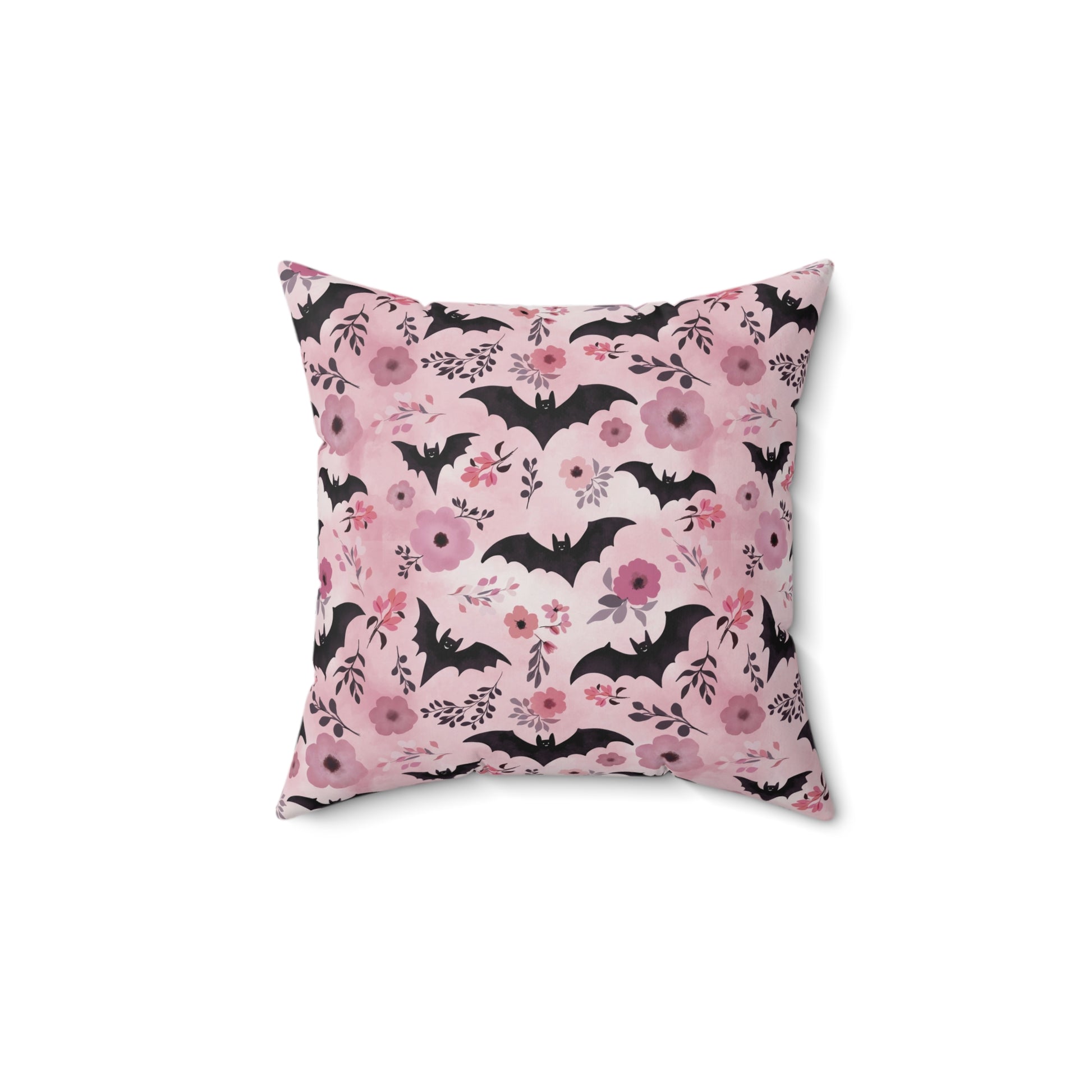 Halloween Bats and Florals Spun Polyester Square Pillow