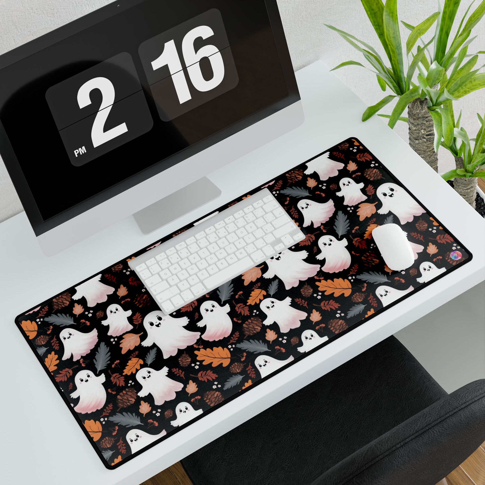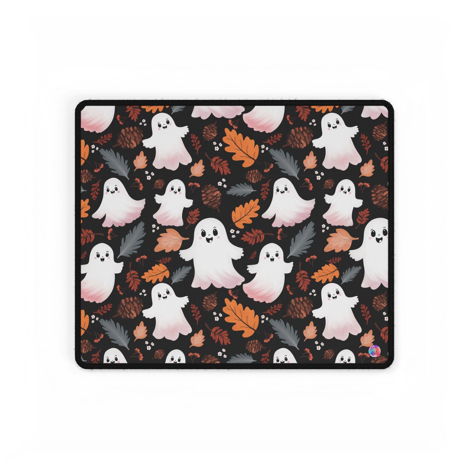 Mouse Pad, Fall Halloween Desk Mat with Autumn Leaves and Cute Happy Ghosts, Seasonal Office Decor, Autumn Desk Pad, Halloween Mousepad,