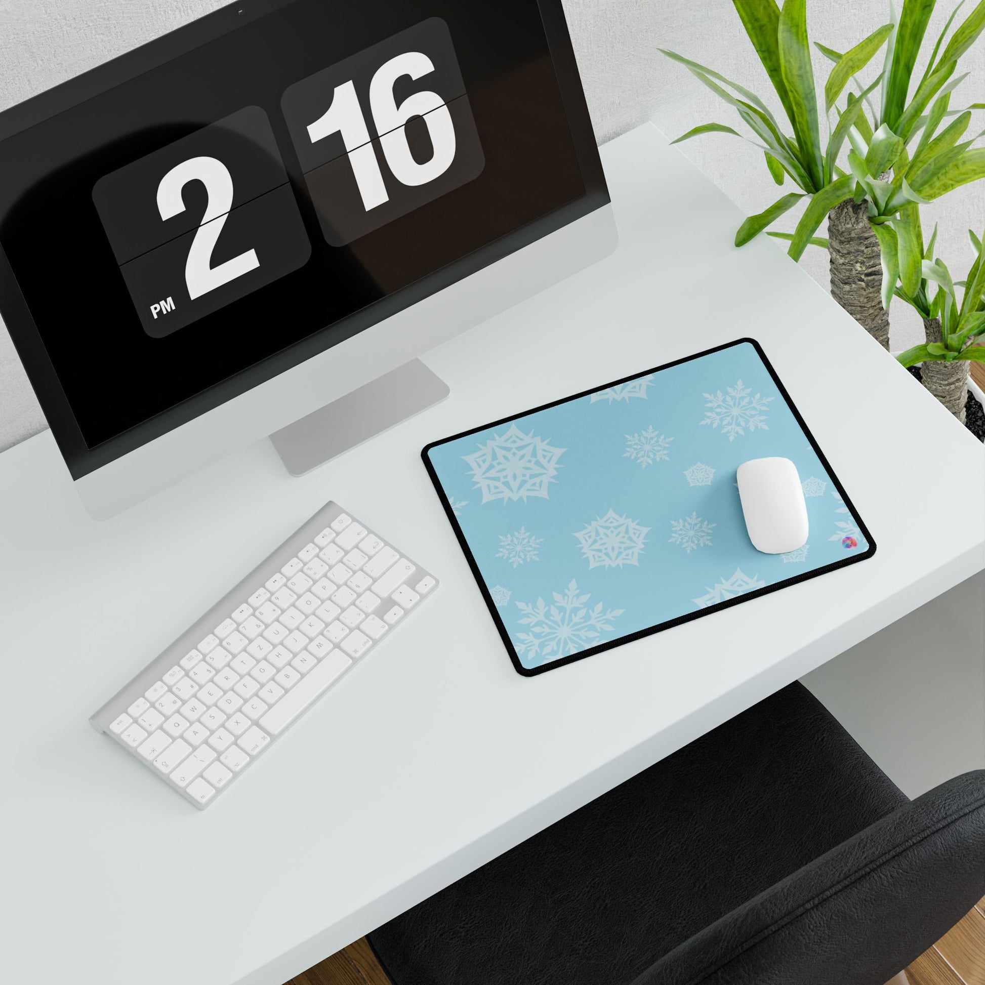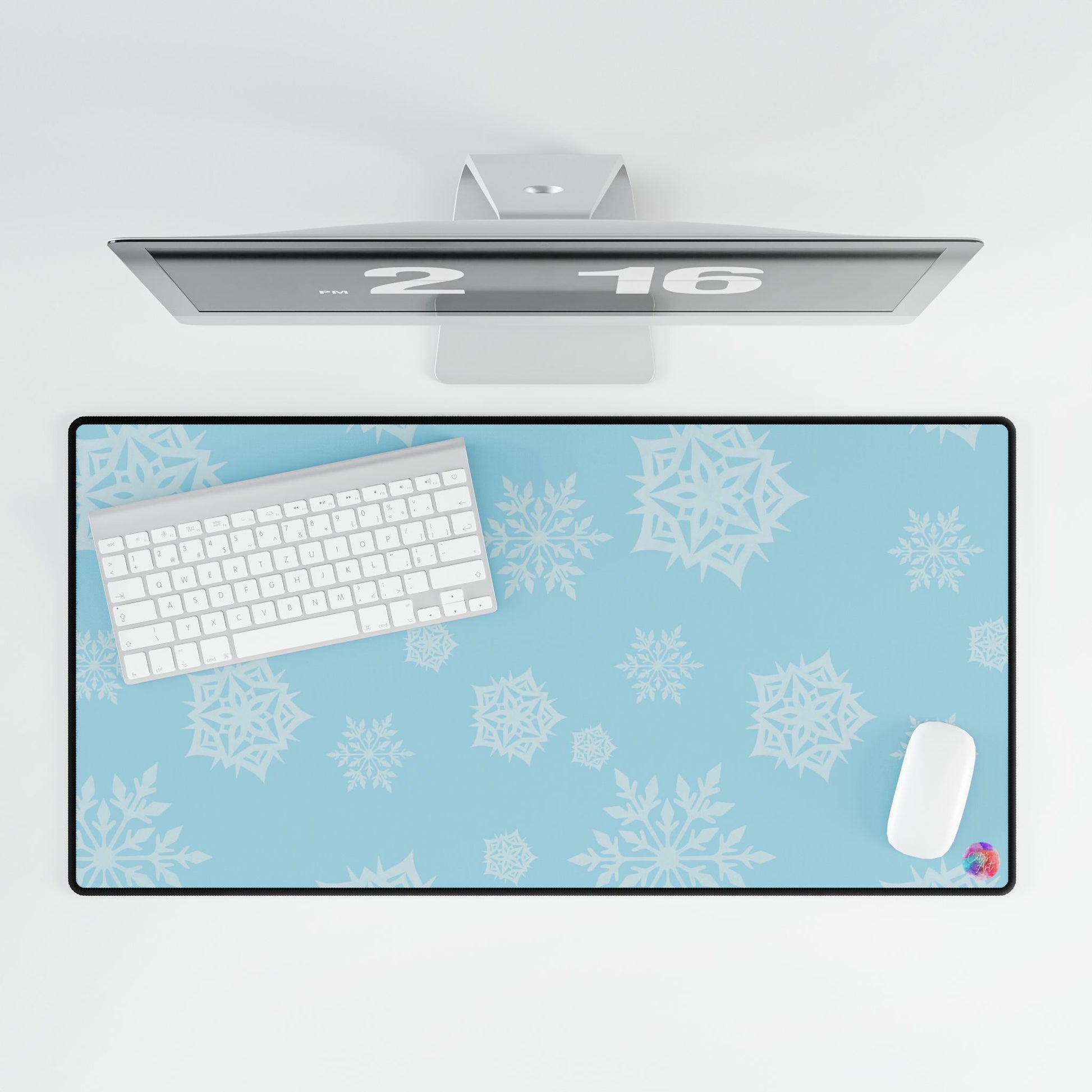Snowflakes Desk Mats, Minimalist Desk Mat, Aesthetic Mouse Mat, Christmas Mouse Pad